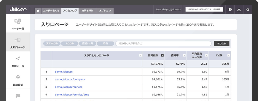 ページ単位、チャネル単位で分析。