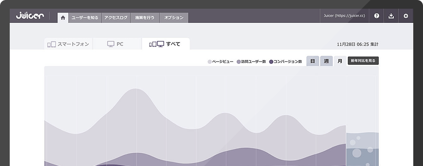 PV、コンバージョン率、直帰率、アクティブ率…Web担当者が忙しくても毎⽇チェックしておきたいアクセス解析の基本指標を1つの画面にぎゅっと凝縮。かんたん、スピーディにサイトの変化を確認できます。